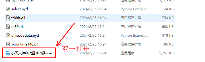 解压文件到电脑,找到 小天文件名批量修改器.exe 双击运行